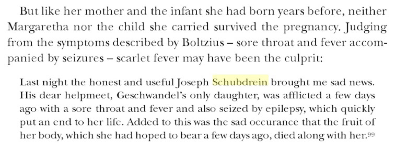 Maria was Joseph’s second wife, the first being Margaretha, daughter of Thomas and Sibylla Geschwandel, who were pleased to have as a son-in-law…